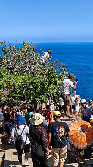 A következő megállóm a Kelingking Beach volt, de ott nem sokáig időztem, ugyanis akkora tömeg volt mint az M3 pótlóbuszon csúcsidőben. Az emberek itt is sorbanálltak a fotókért, a guide-ok pedig a fákon másztak a tökéletes fotók érdekében. Őszíntén kiábrándító volt az egész és inkább visszamentem a szállásra medencézni és vacsorázni egy jót. Eldöntöttem, hogy inkább visszamegyek másnap naplementére, amikor az "egynapos" tömeg már elindult vissza Balira.