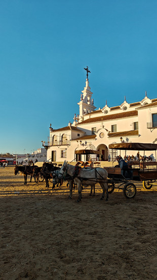 Ebéd után még sétáltunk a város hangulatos szűk utcáin, majd pedig felvettük az autót a parkolóházból és indultunk is El Roció felé. Ez a város olyan mintha egy western filmből szabadult volna. Mikor odaértünk, az aszfaltos út elfogyott, felváltotta a földes/homokos út, autók helyett pedig főként lovakkal találkoztunk. Leparkoltuk az autót (fizetni kell a parkolásért!!!) és gyalog folytattuk a hely felfedezését. Kicsit úgy éreztem magam mint a "Vissza a jövőbe" című film harmadik részében, mikor Marty a vadnyugaton találja magát.